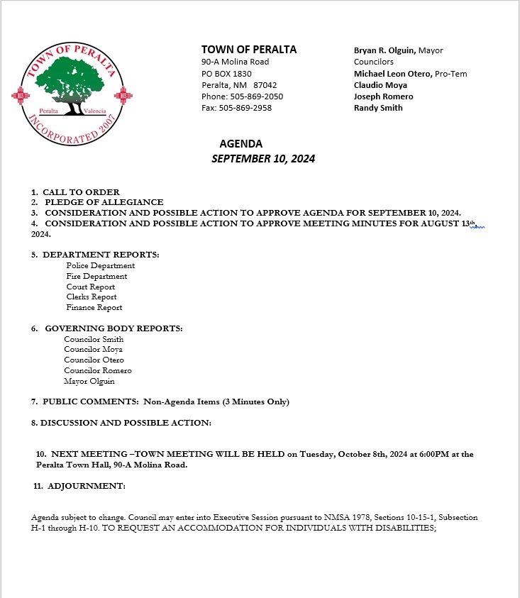 Council Meeting 9/10/24 at 6pm