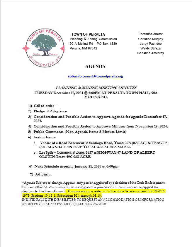 P & Z Agenda for Tuesday 12/17/2024