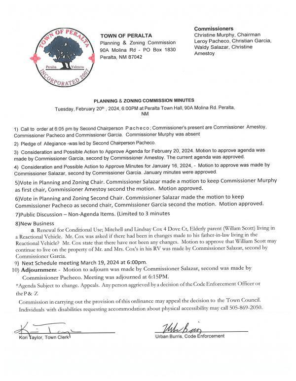 P&Z MINUTES 2/20/24